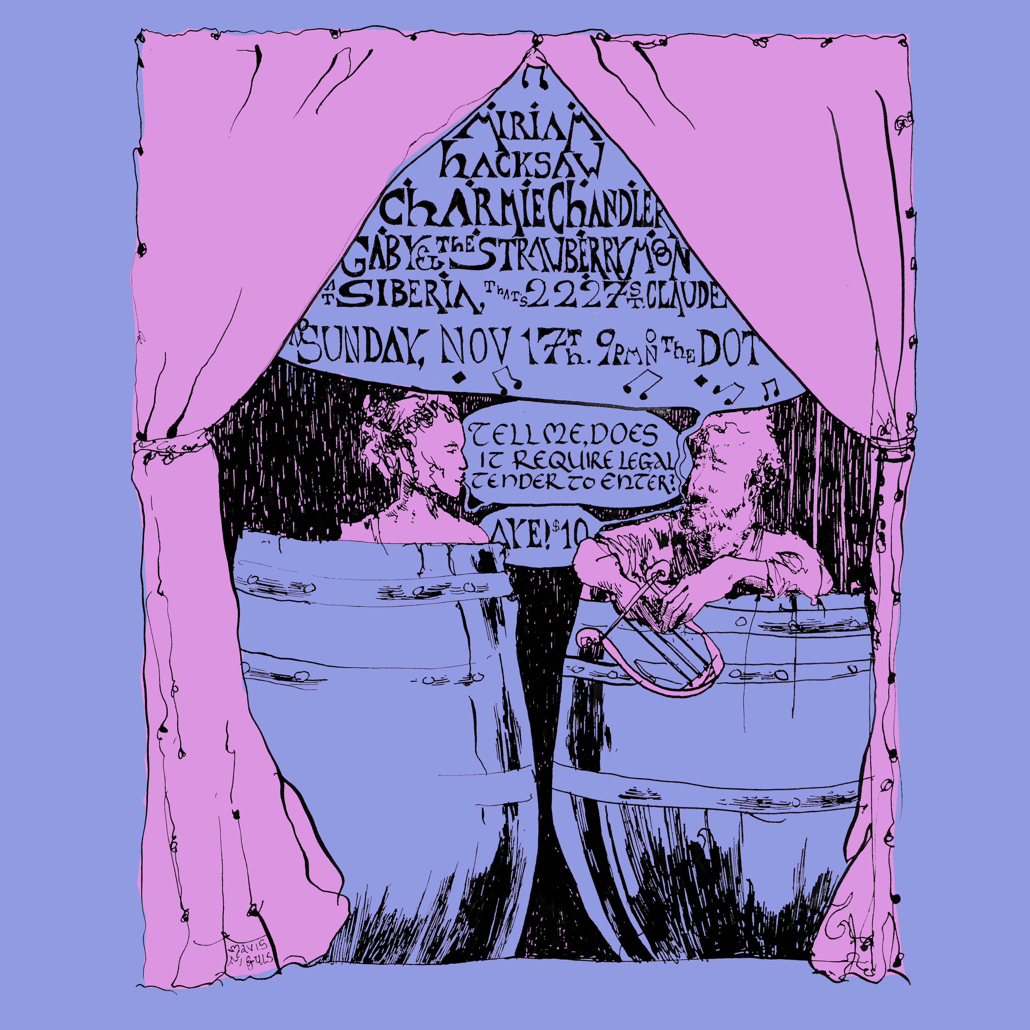 Poster for Sally Baby and James McClaskey, March 2024, Pen and ink and digital