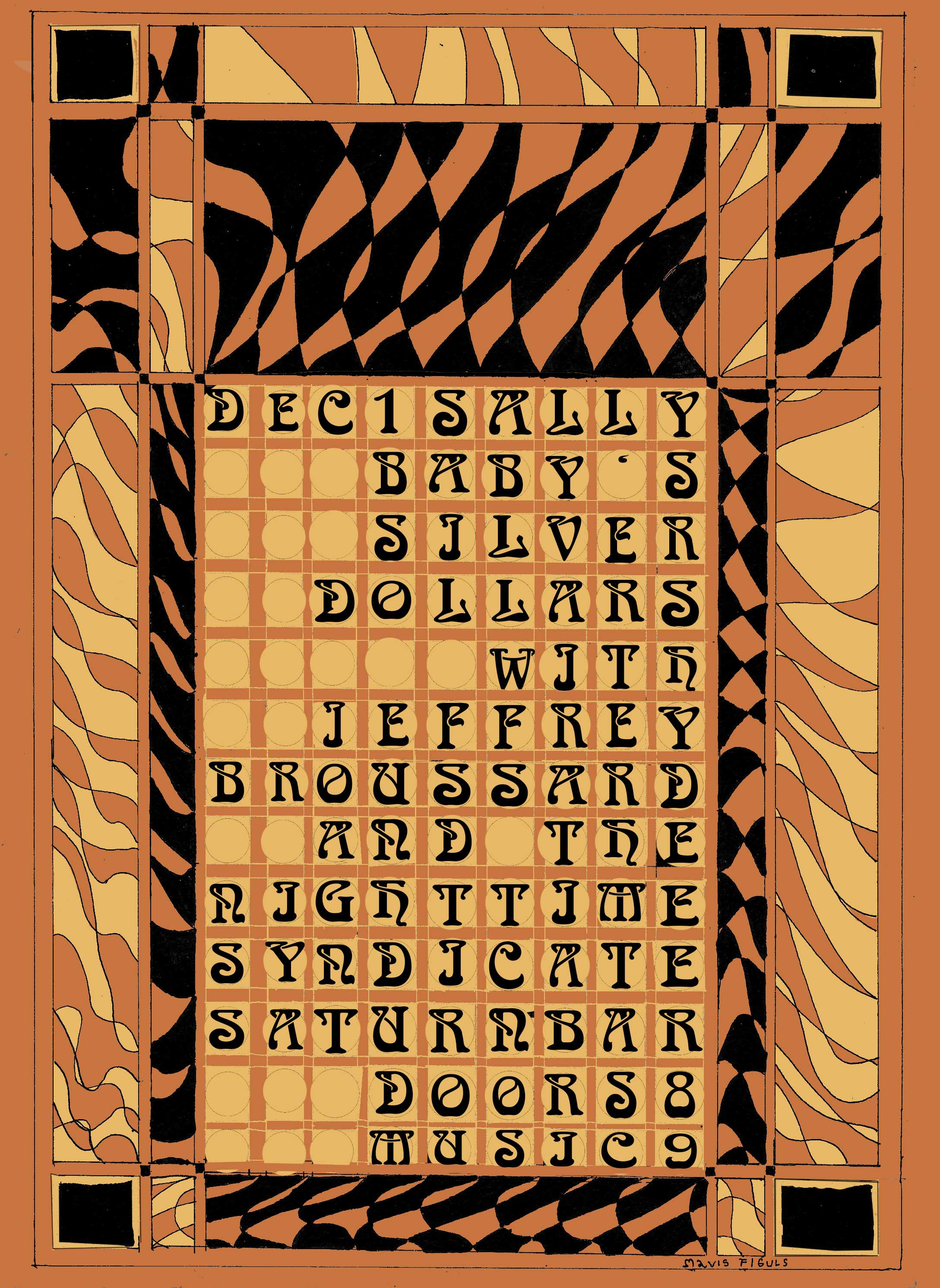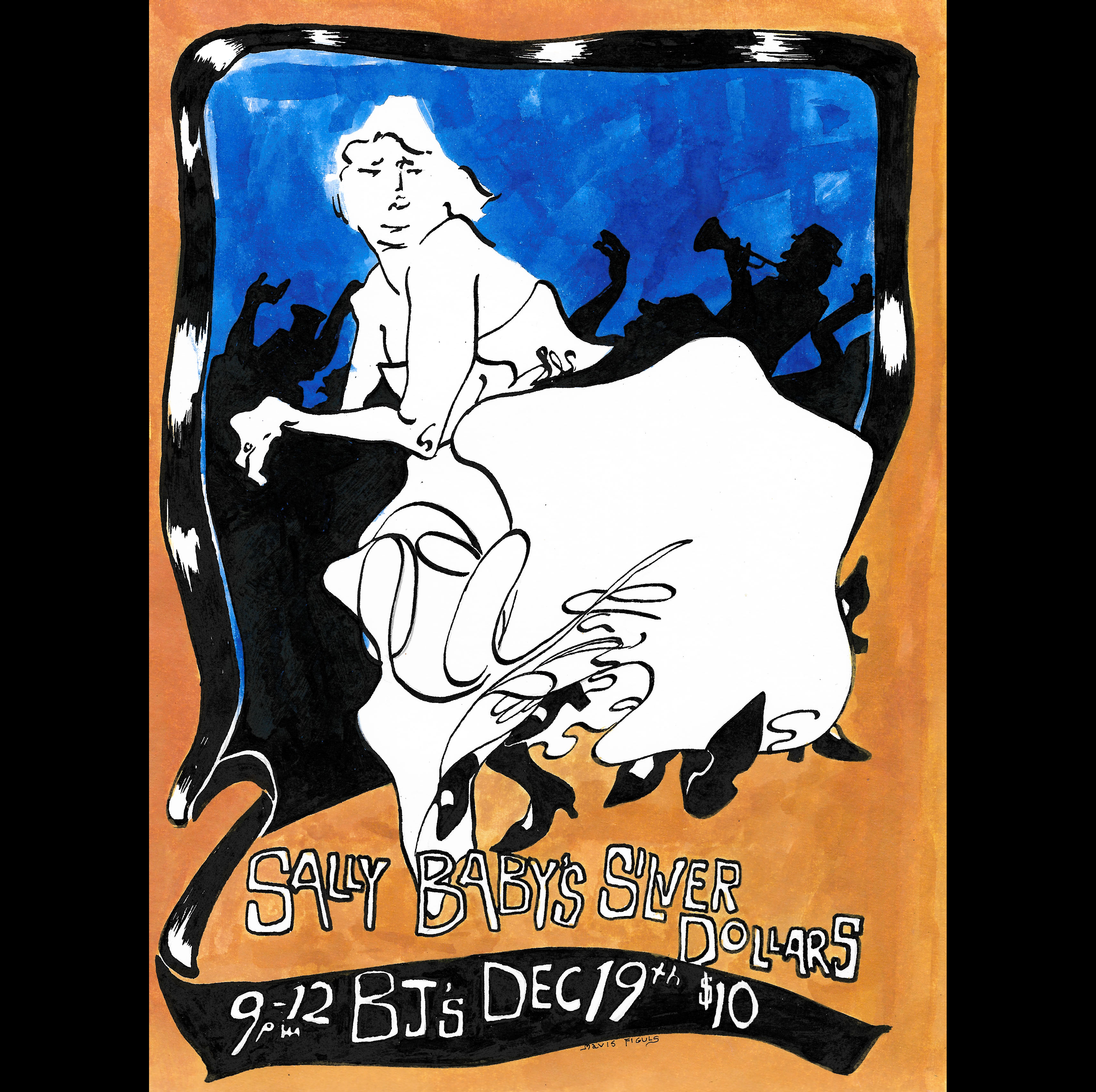 Sally Baby's Silver Dollars and Jeffrey Broussard and the Nighttime Syndicate, Dec 2024, Pen and ink, digital color